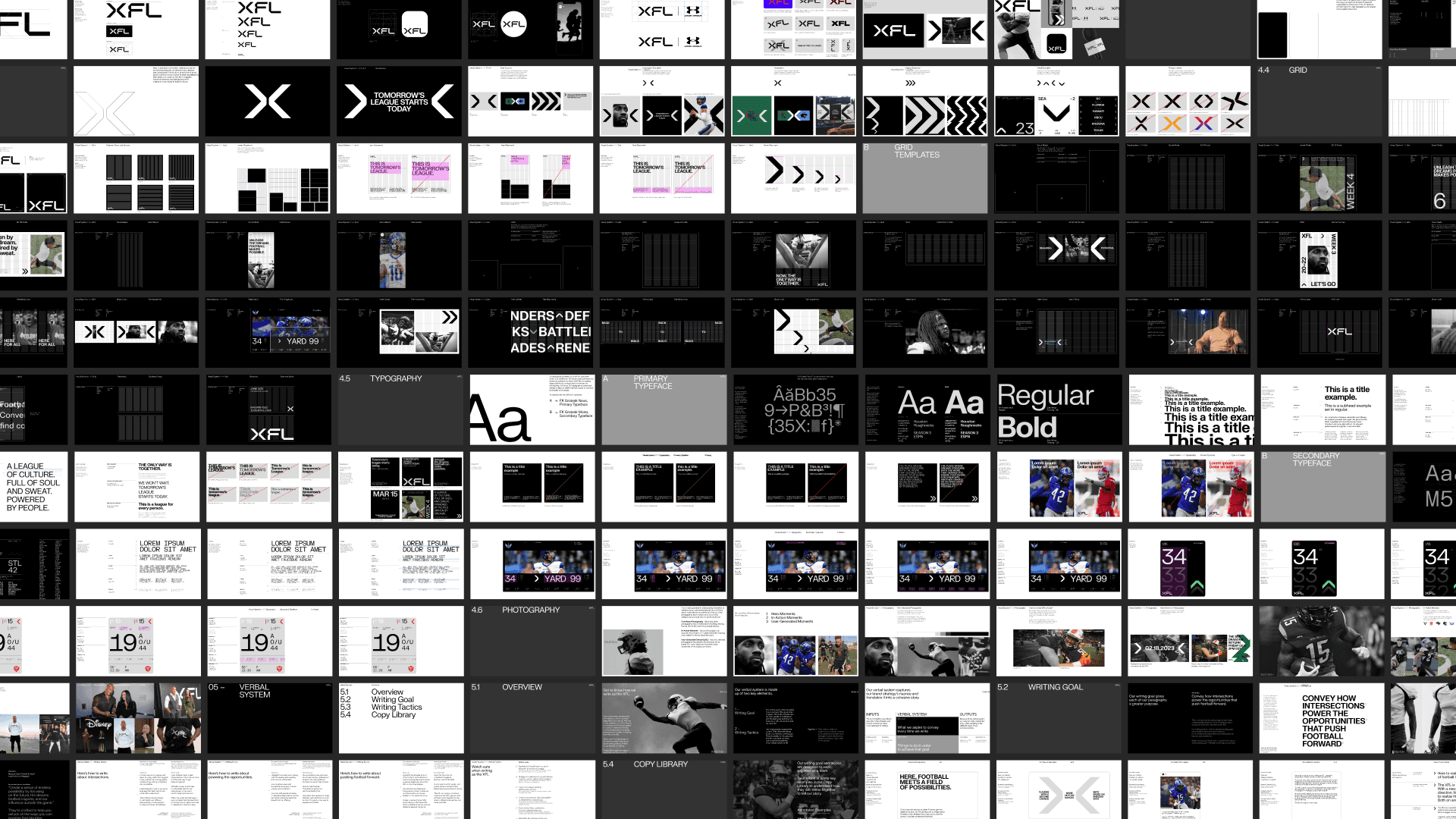 Across both iterations of the XFL, a bold spirit of innovation has been a common thread; however, it’s never had the chance to fully play out. In 2020, the league was acquired by Dany Garcia, Dwayne Johnson, and Gerry Cardinale of Redbird Capital with the vision to change the way people experience football. We designed an identity that matches the pace the XFL’s purpose sets. As the intersection of opportunity, the XFL is a league where all people, perspectives, and ideas can come together to push football forward. Our identity is modern, active, and inviting. Designed to ask questions, converge new experiences, and envision new futures—for the XFL and the world around it.