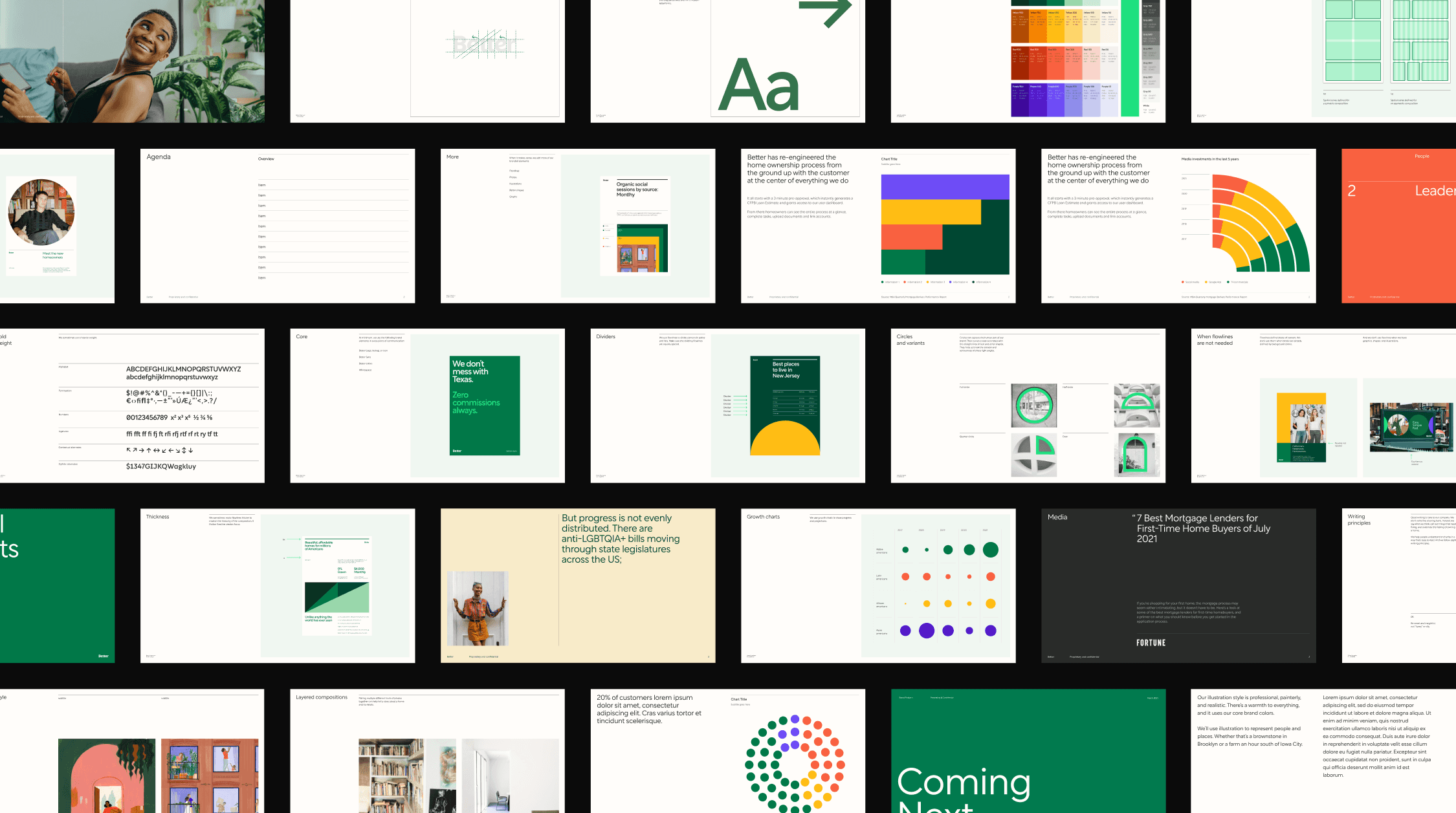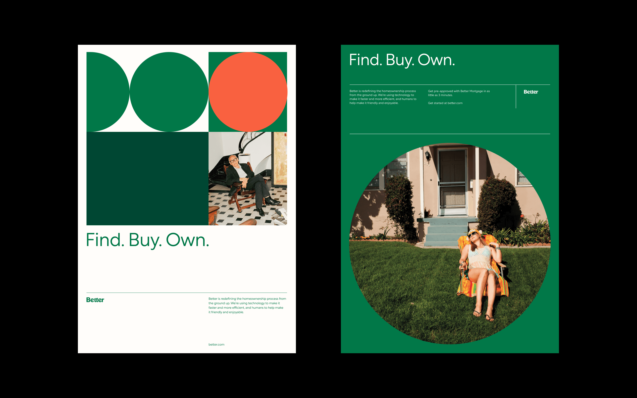 At Better, the project focused on evolving the brand to better reflect clarity, trust, and momentum in a category defined by complexity and stress. Working across brand strategy, visual identity, and system design, the team reimagined how Better shows up across digital touchpoints—balancing financial rigor with a more human, approachable expression. The result is a flexible, modern identity system that supports scale while reinforcing Better’s core promise: making homeownership simpler, faster, and more transparent.